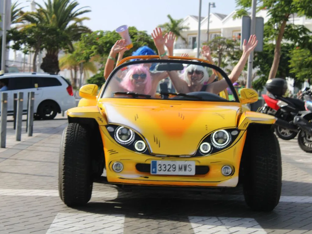Conduce tu buggy mientras recorres paisajes volcánicos y carreteras panorámicas, disfrutando no solo de la aventura sino también del toque único que hace especial esta excursión: ¡pelucas de colores y mucho humor para pasarlo en grande!