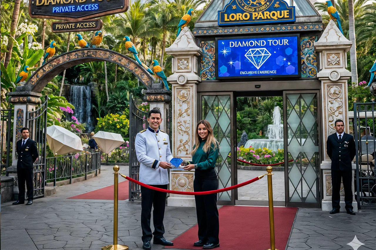 Un paquete para disfrutar de la máxima exclusividad de los servicios de Loro Parque. Compra tu Diamond Tour y, además del acceso a Loro Parque, podrás disfrutar de Loro Explore, una visita guiada de una hora y media de duración por las zonas más exclusivas del parque, asientos reservados en los espectáculos y un fantástico almuerzo en nuestro restaurante Brunelli’s Steakhouse (situado frente al parque), donde podrás disfrutar de las mejores carnes del mundo y las impresionantes vistas al mar que ofrece su gran ventanal. Tras del almuerzo podrás seguir disfrutando del parque.