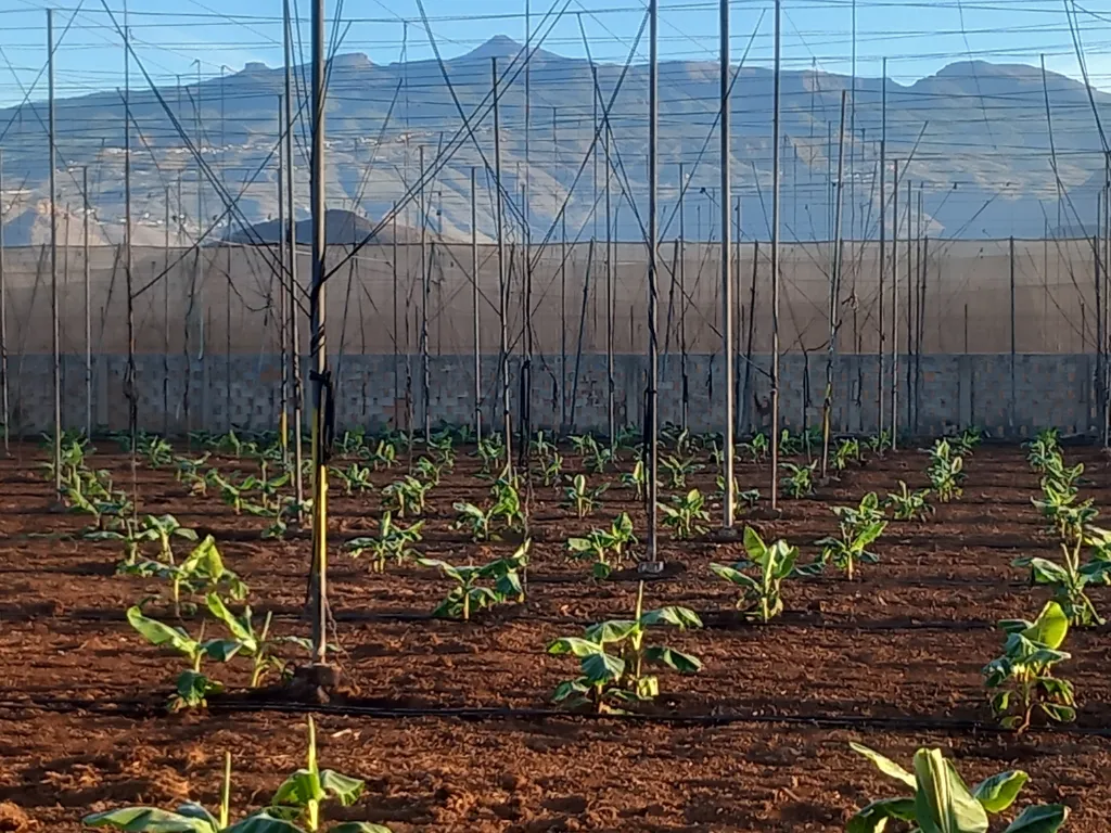 Esta finca en invernadero es de producción integrada con un 98% de plátanos, variedad Gran Enana y Gruesa Palmera, y un 2% de frutales: papaya, aguacate, mango y otros frutales. Dispone de cuarto de aperos, EL CUARTITO, habilitado como espacio de descanso, talleres, degustaciones, exposición y tienda.