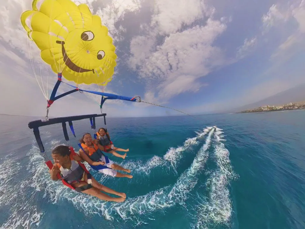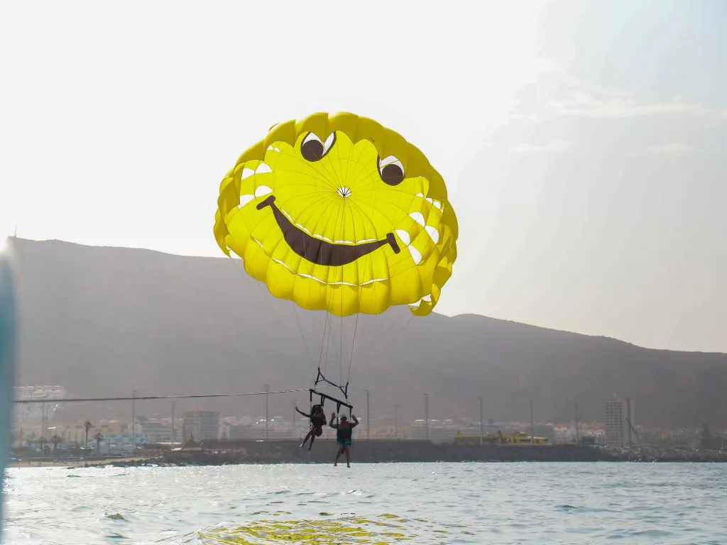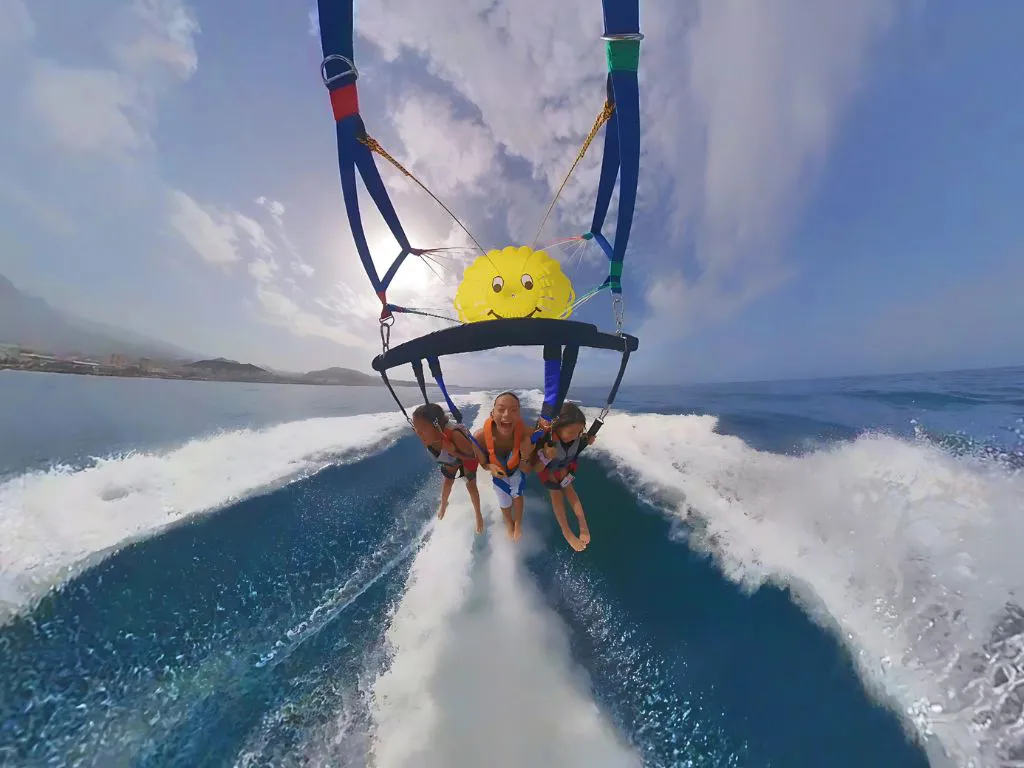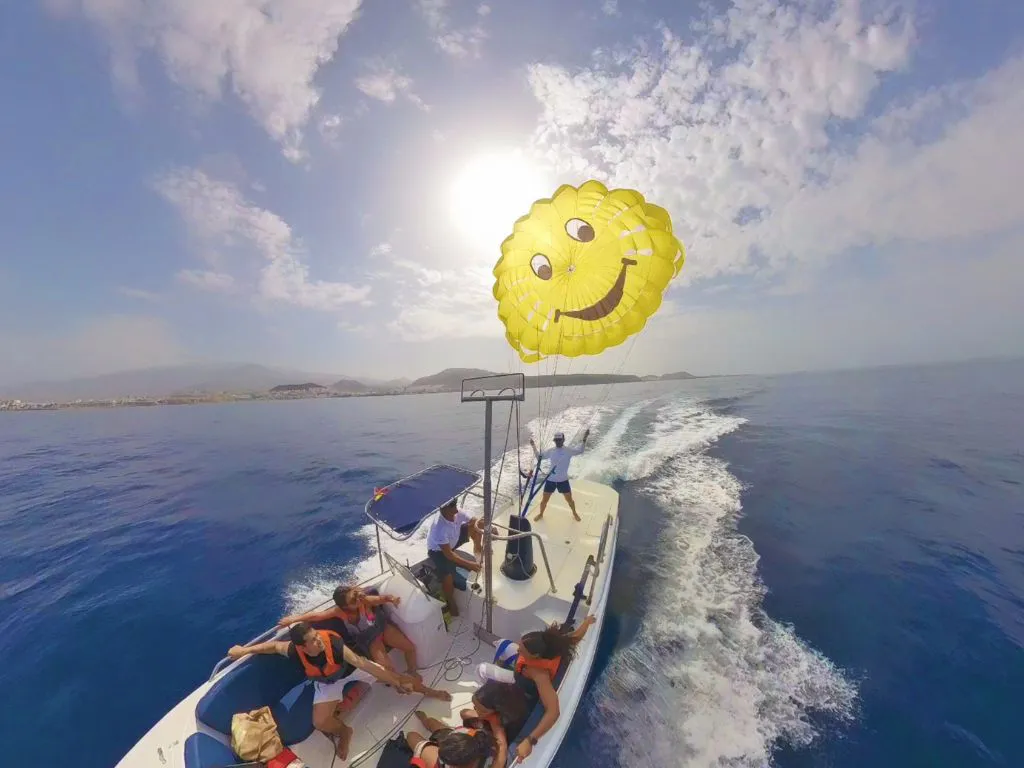 Disfruta de una emocionante experiencia de parascending en la costa sur de Tenerife, donde despegarás y aterrizarás directamente desde una embarcación para elevarte hasta 80 metros sobre el mar y contemplar paisajes espectaculares, incluyendo el Teide en días despejados.