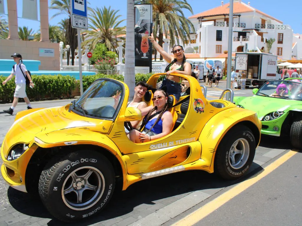 Conduce tu buggy mientras recorres paisajes volcánicos y carreteras panorámicas, disfrutando no solo de la aventura sino también del toque único que hace especial esta excursión: ¡pelucas de colores y mucho humor para pasarlo en grande!